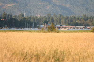 The park features an old time bronze of a lady on a bike, with two dogs running alongside her, a big fountain, four or five rock fountains, stairs that lead to the water even though you can't go in the water, a beautiful waterfalls, a nice pavilion, and as I mentioned before, a great play area, along with lots of grass. Of course, it has all the new, big city condos going up all around it, but it is nice that they put in this park for the public to enjoy. I look forward to going back to the park in the daylight and seeing everything it has to offer. It is a very pretty city park. There are lots of trees, rocks, benches, and of course the water. It is a nice oasis in the middle of the hubbub of the busy life of Coeur d'Alene. I would still rather be up in the mountains any day, next to a God-made waterfall and lake, but I guess I just have to make the best of where I've been planted and enjoy the things around me as much as possible.